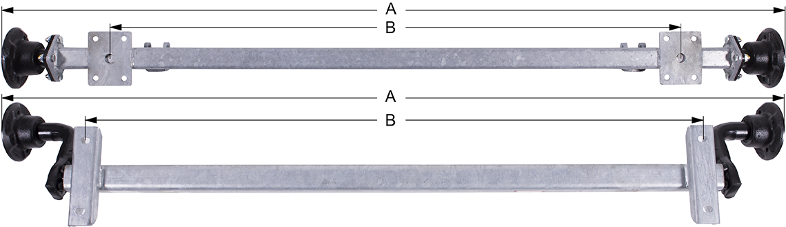 | 9353 | Torsion axle 1350kg | PCD 5x112mm with brakes. | 1960mm | 1350mm | -- |