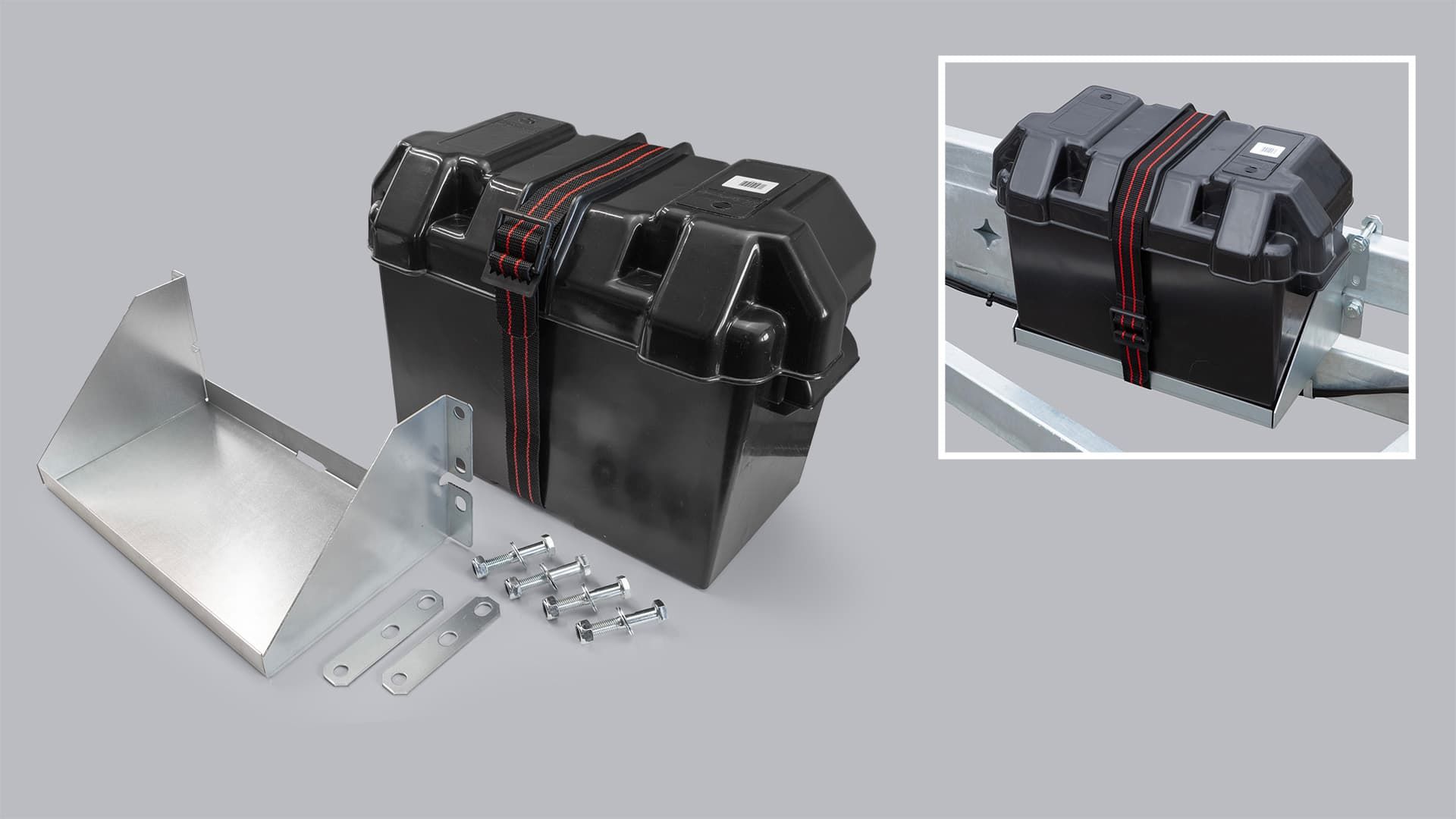 | 24456 | Paadihaagise akukast | Plastikus akukast koos kinnitus alusega. Akukasti sisemõõdud 330x175x225mm. | -- | |
